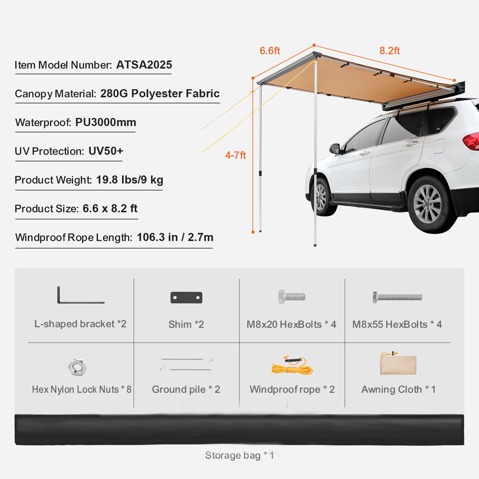 Car Side Awning, Large 6.6' x 8.2' Shade Coverage Vehicle Awning, PU3000mm UV50+ Retractable Car Awning with Waterproof Storage Bag, Height Adjustabl Car Side Awning, Large 6.6' x 8.2' Shade Coverage Vehicle Awning, PU3000mm UV50+ Retractable Car Awning with Waterproof Storage Bag, Height Adjustabl Car Side Awning, Large 6.6' x 8.2' Shade Coverage Vehicle Awning, PU3000mm UV50+ Retractable Car Awning with Waterproof Storage Bag, Height Adjustabl